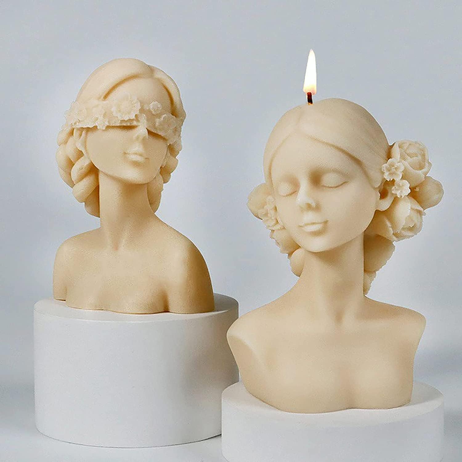Bring timeless beauty and artistic elegance into your home with this Decorative Lady Candle Set of 2, crafted with premium-quality wax and shaped into stunning female bust sculptures. These candles are more than just décor — they are miniature art pieces, inspired by classical European sculptures.