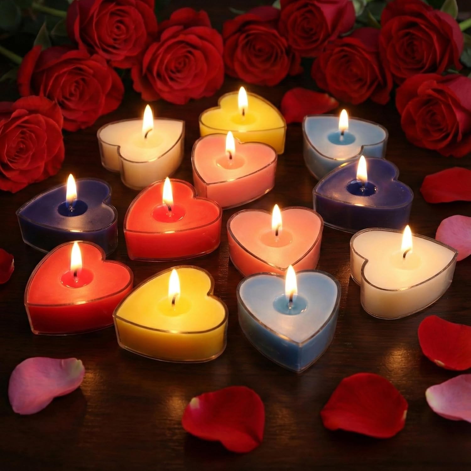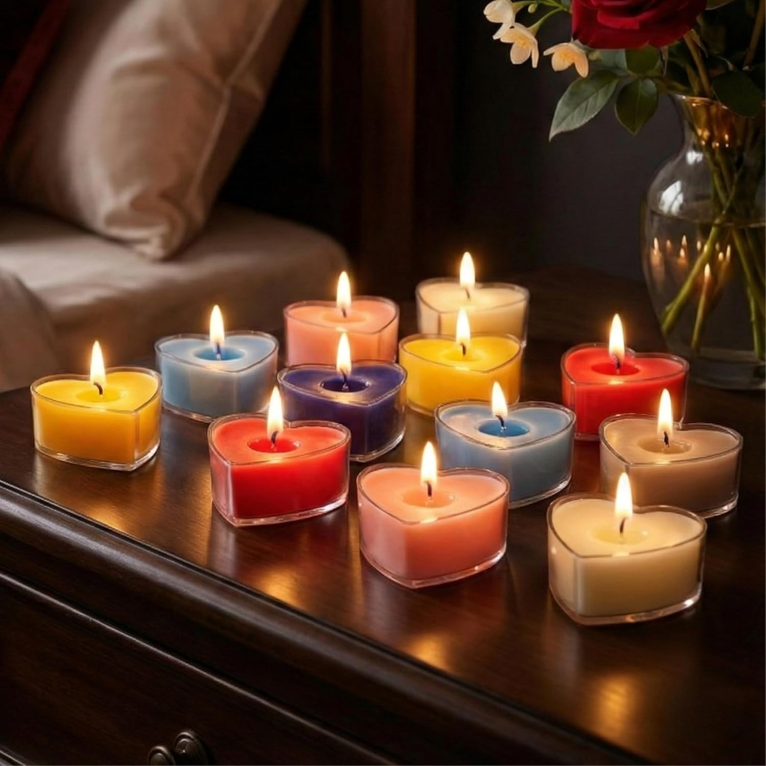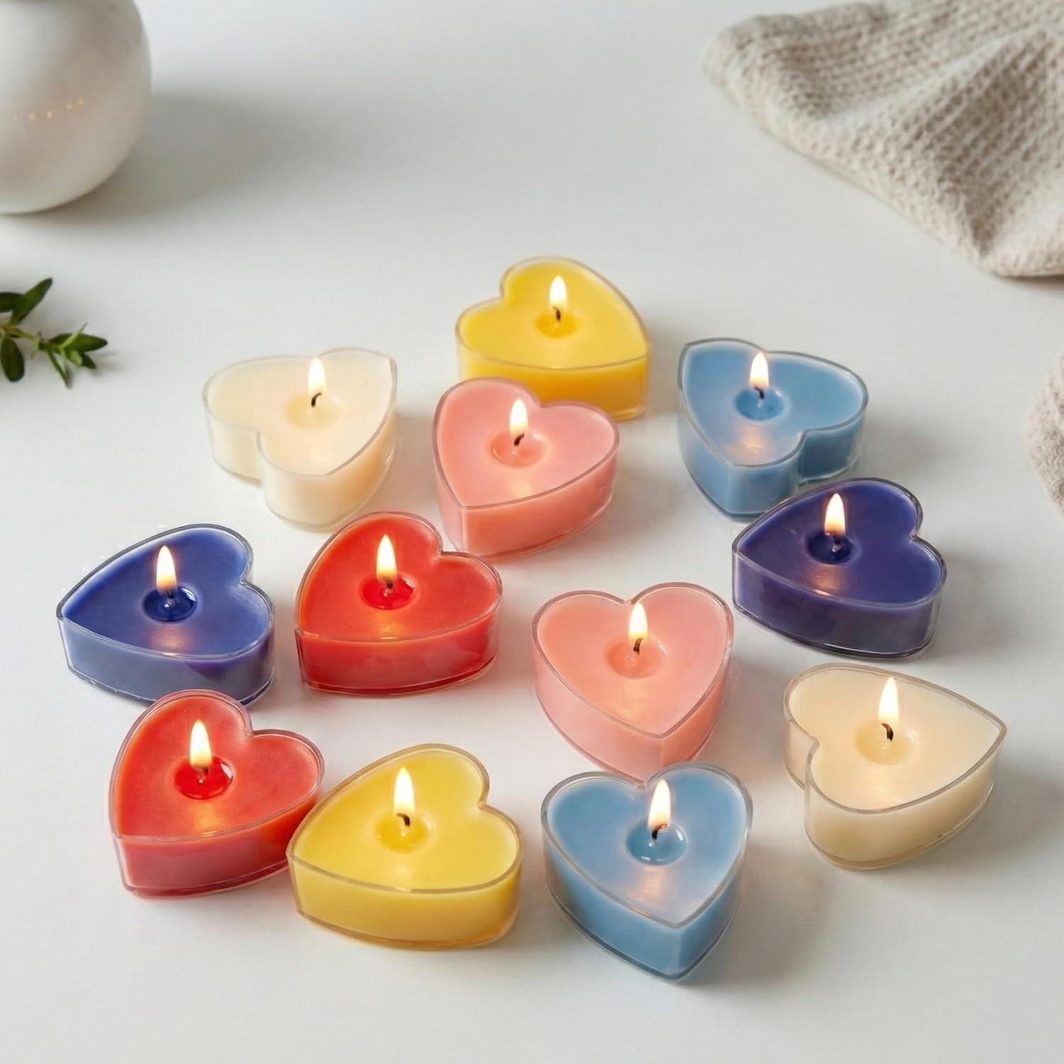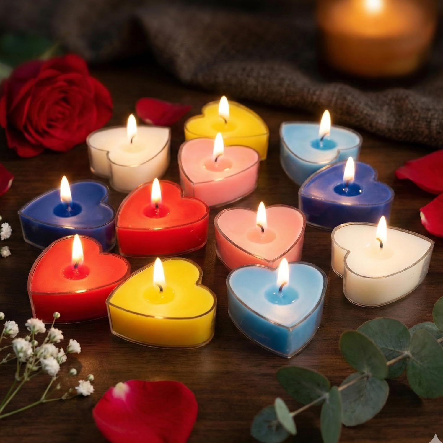& Free ShippingSet of 12 Pure Soy Wax Acrylic Heart Shape Scented Candles – Multi Color & Multi Scent. Compact, smokeless, long-lasting, and perfect for Valentine’s Day décor, romantic gifting, and intimate candlelight settings. Made in India.