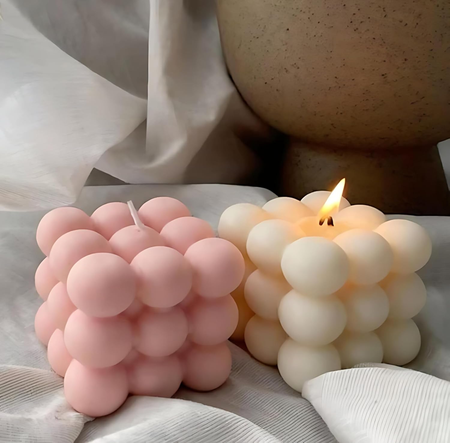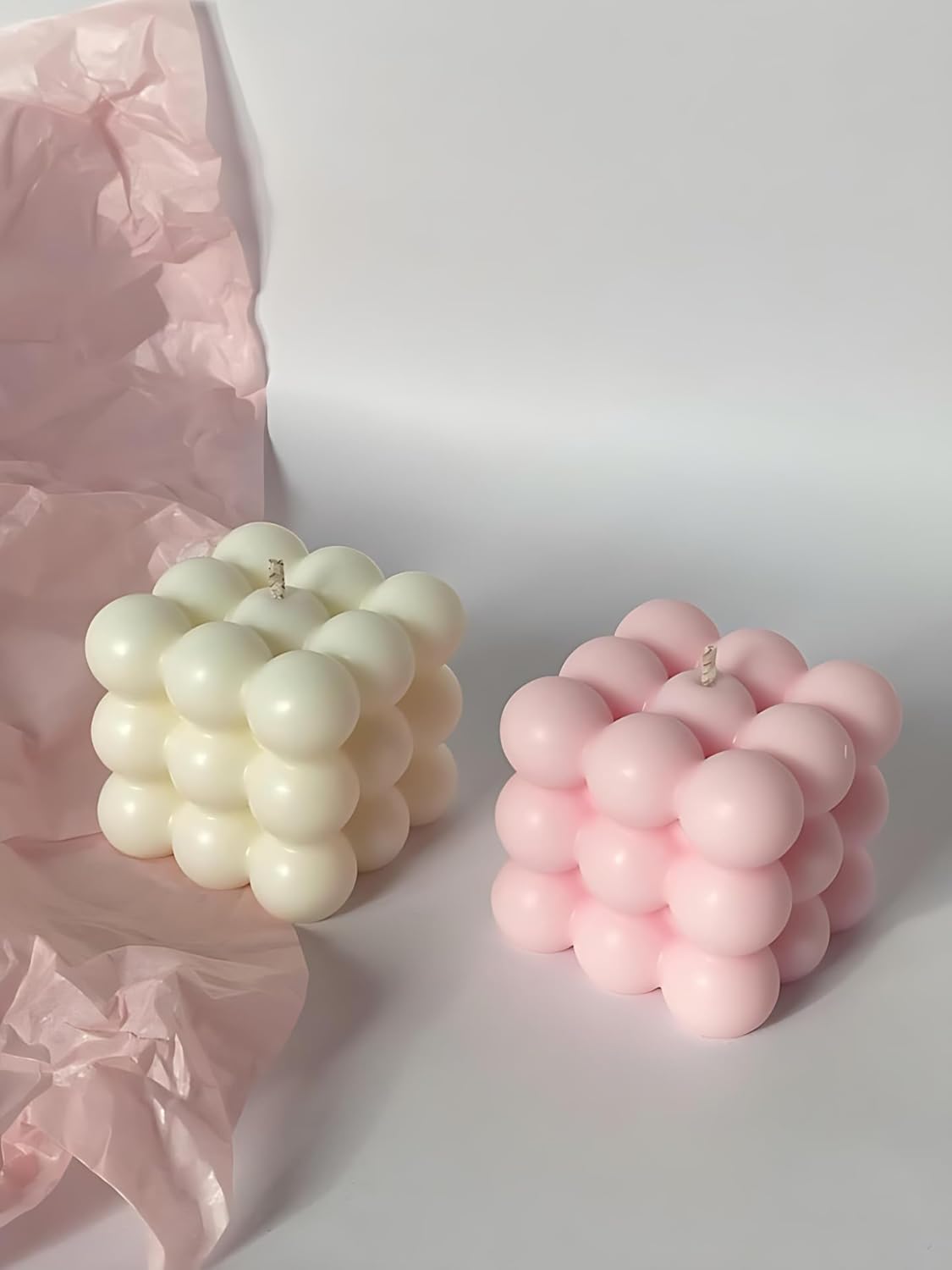 ✔ 2 × Bubble Soy Wax Scented Candles (White & Pink)