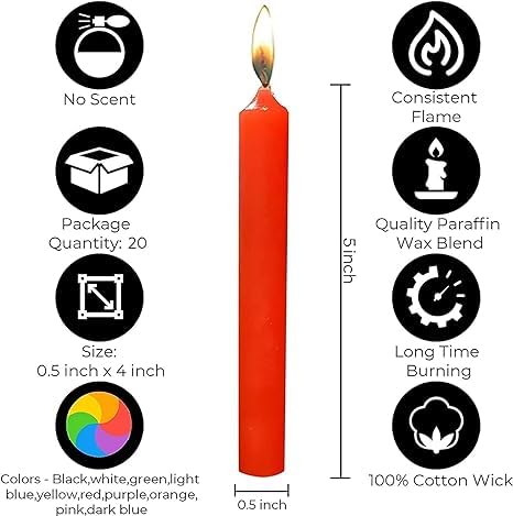 Made from high-quality premium wax, each candle delivers a clean, smokeless, and stable flame with an approximate burn time of 2 hours per candle. Their slim profile and vivid red hue make them ideal for altar styling, prayer areas, manifestation rituals, and spiritual décor.