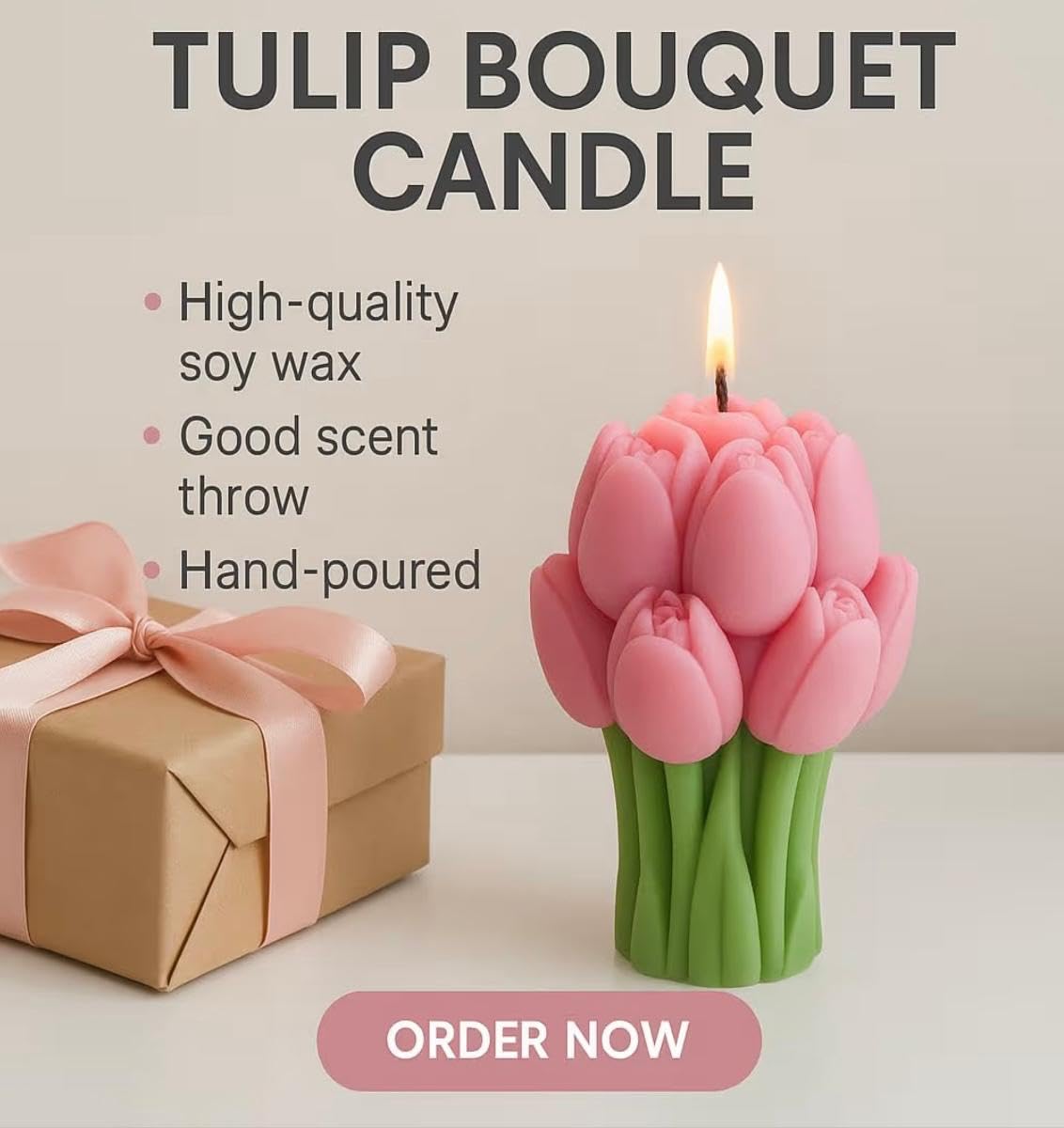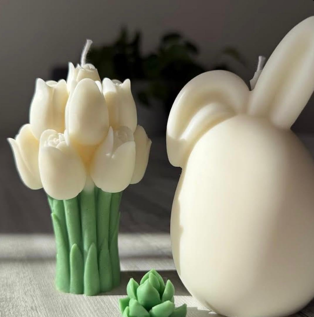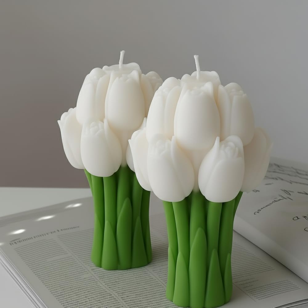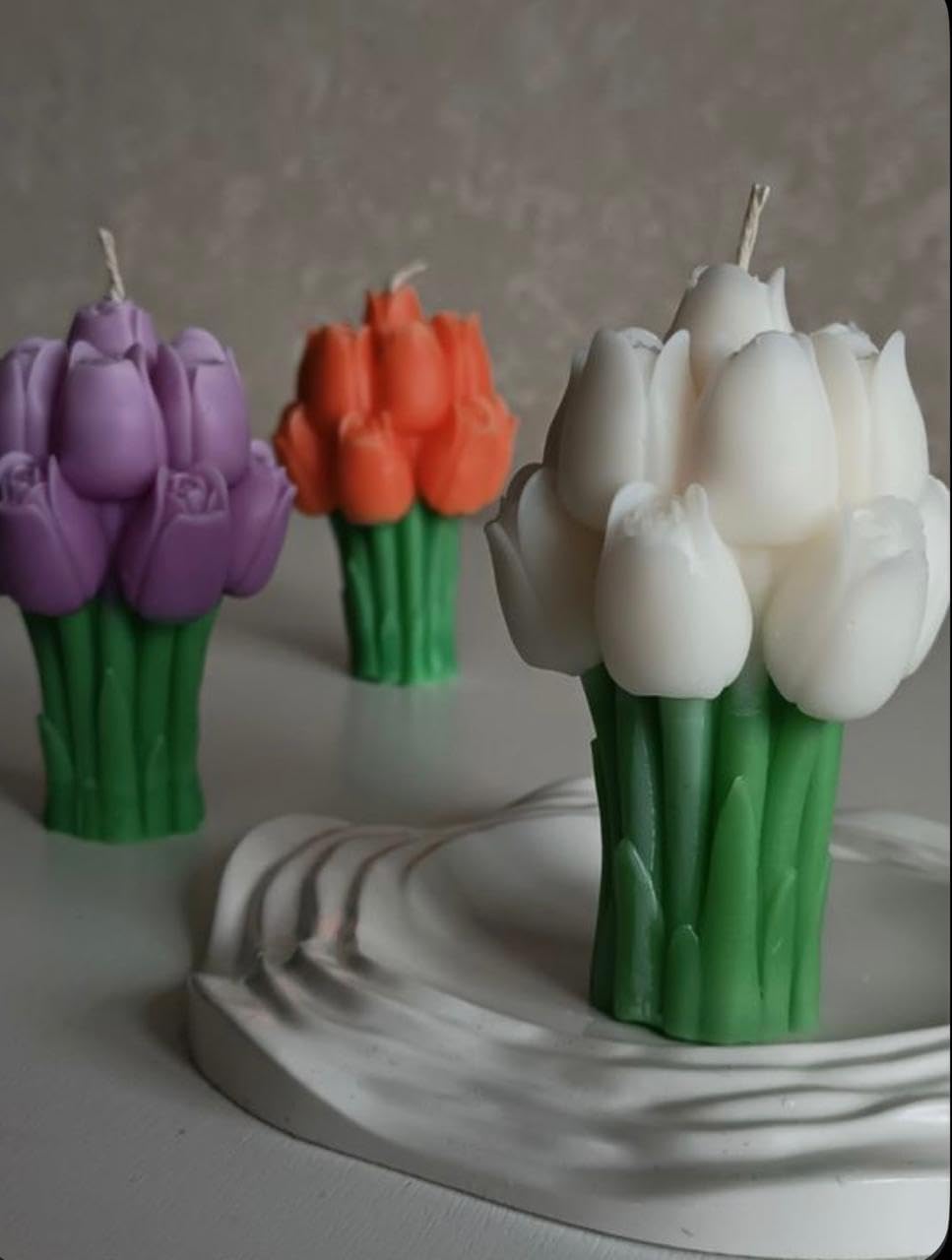 & Free ShippingElegant white tulip candle made from natural soy wax. A minimalist, calming décor piece perfect for bedrooms, prayer corners, gifting, and serene home styling.