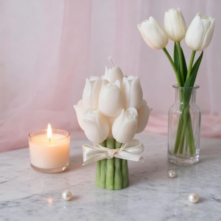 🤍🌷🕯️ White Tulip Candle | Soy Wax Floral Candle | Minimalist Home Décor & Gift ✨🕊️